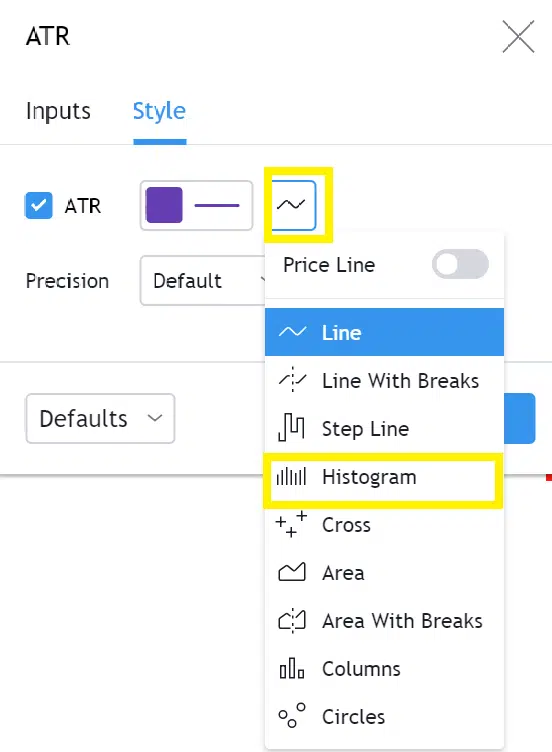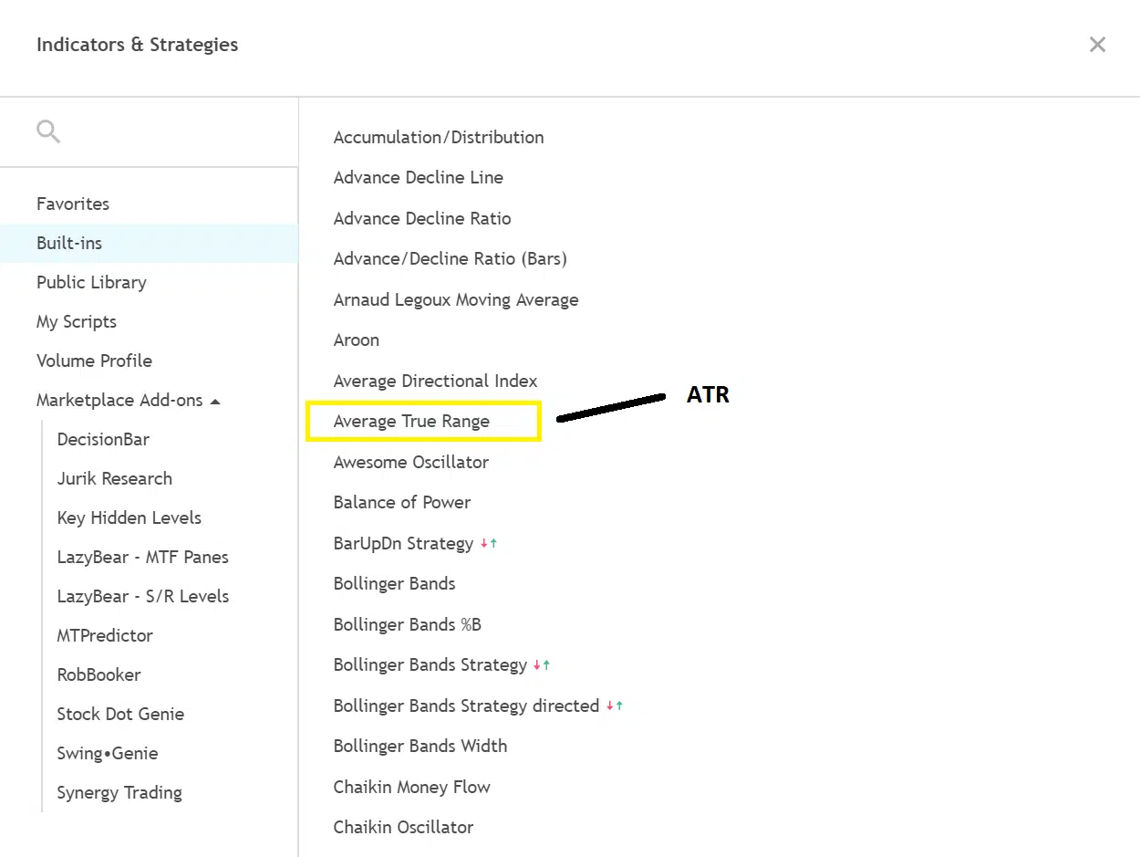 Unter der Rubrik „Indikatoren“ wählst Du den Indikator Average True Range aus.