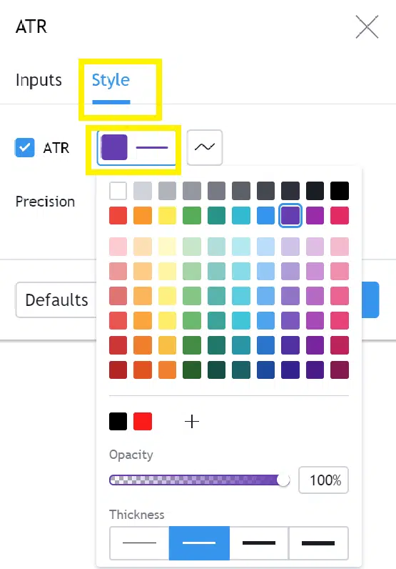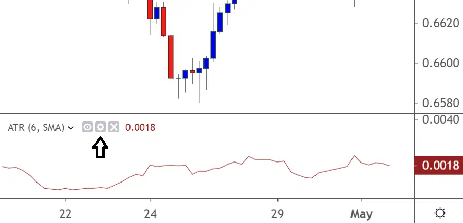 Mit einem Mausklick auf das Werkzeug Symbol oder mit einem Maus-Doppelklick auf den ATR Indikator öffnet sich das Einstellungsmenü: