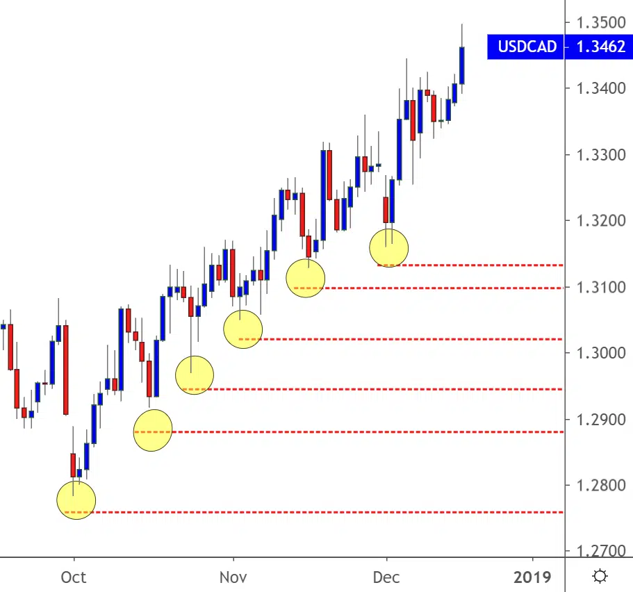 Insbesondere nach starken „Impulsbewegungen“ werden diese häufig am nächsten Handelstag oder im nächsten Zeitintervall wiederholt.