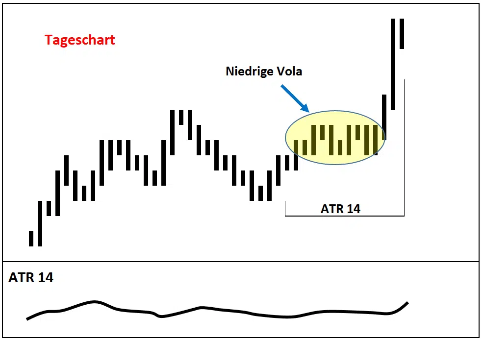 In diesem skizzierten Beispiel wird die durchschnittliche Volatilität der letzten 14 Handelstage berechnet.