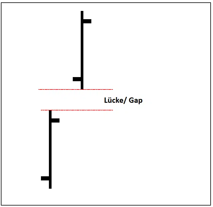 Genauso funktioniert es auch bei fallenden Kursen, also bei einem Abwärtsgap.