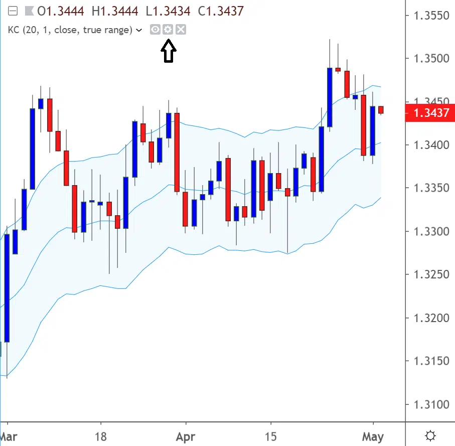 Mit einem Mausklick auf das Werkzeug-Symbol oder mit einem Maus-Doppelklick auf den Keltner Channel öffnet sich das Einstellungsmenü: