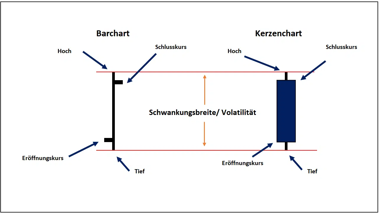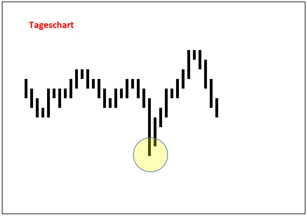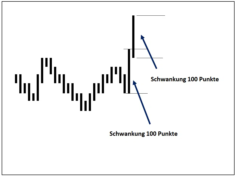 Wir sehen im Bild die Schwankungsbreite des Kursverlaufes, also die Range vom Hoch zum Tief.