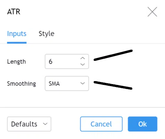 J. Welles Wilder empfiehlt eine Einstellung des ATR mit 14 mit einer einfachen Durchschnittsberechnung.