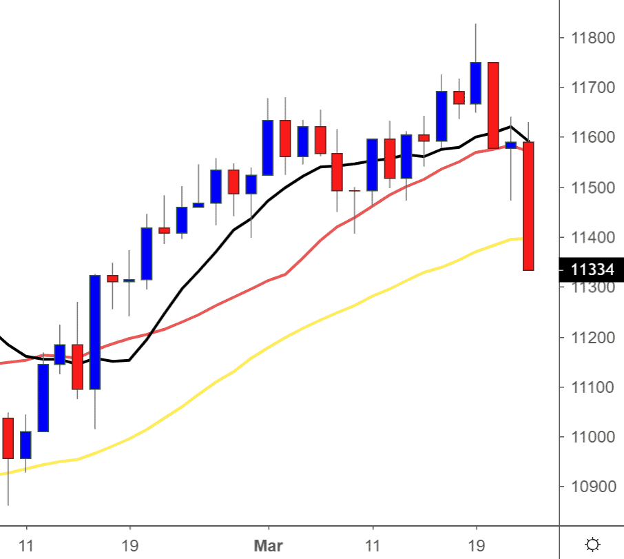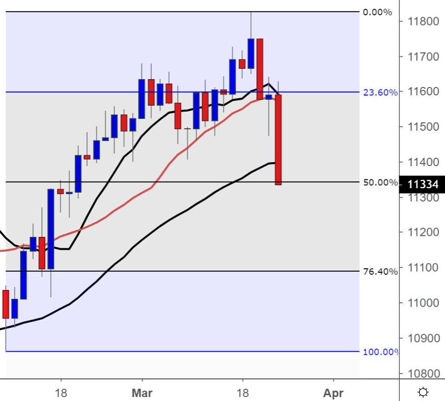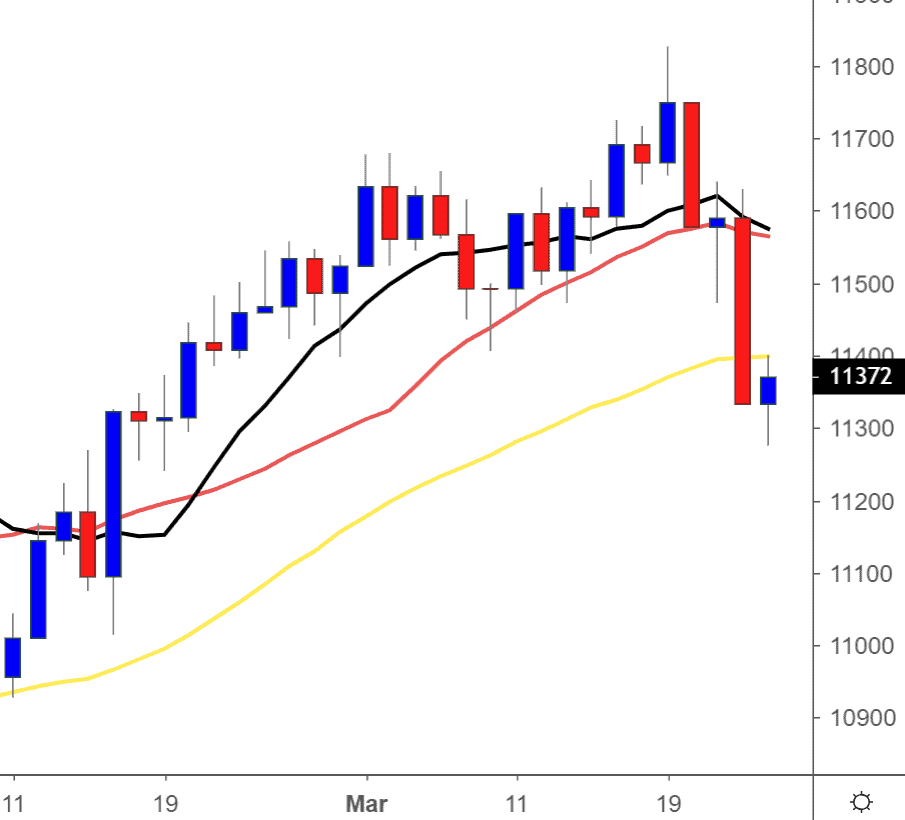 Hier sieht Du einen Tageschart vom 22. März 2019 im DAX: