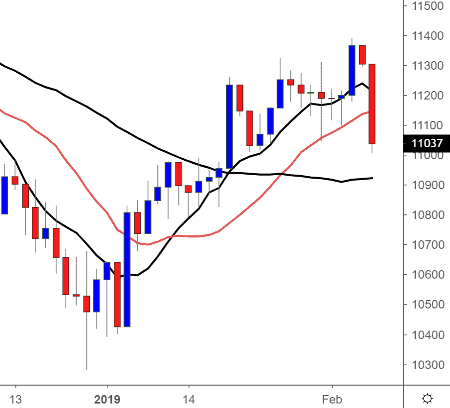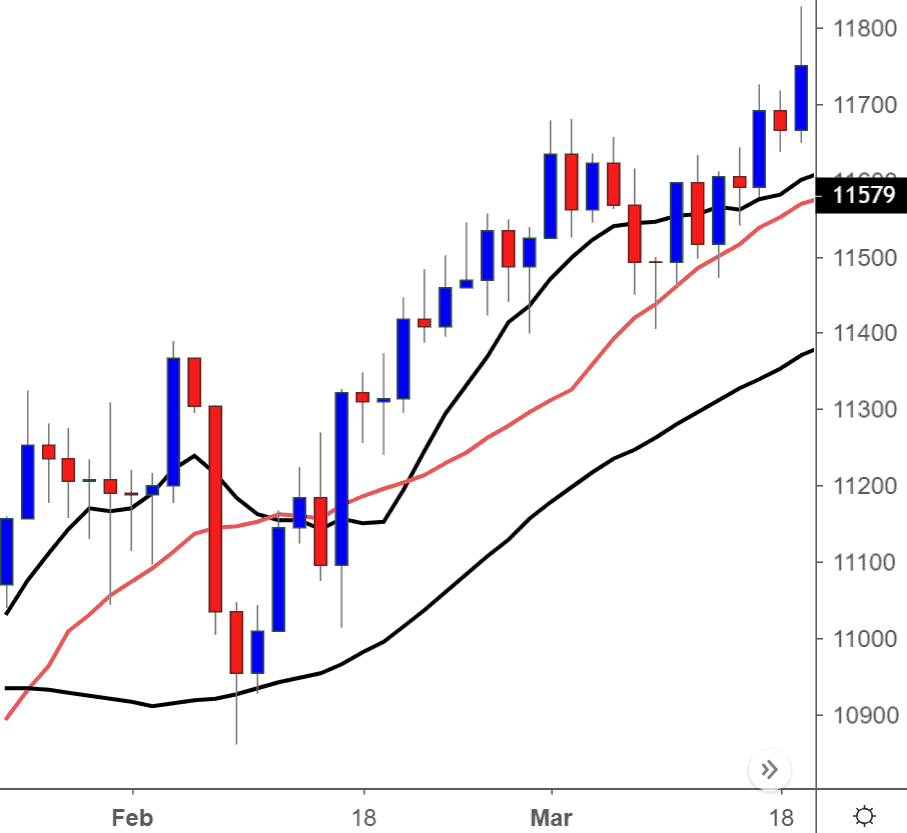 Der Handelsverlauf der nächsten Handelstage. Über 580 Punkte Anstieg. Das ist zwar jetzt ein Paradebeispiel, aber die Moving-Average-Counter-Strategie verfügt grundsätzlich über Vorteile.