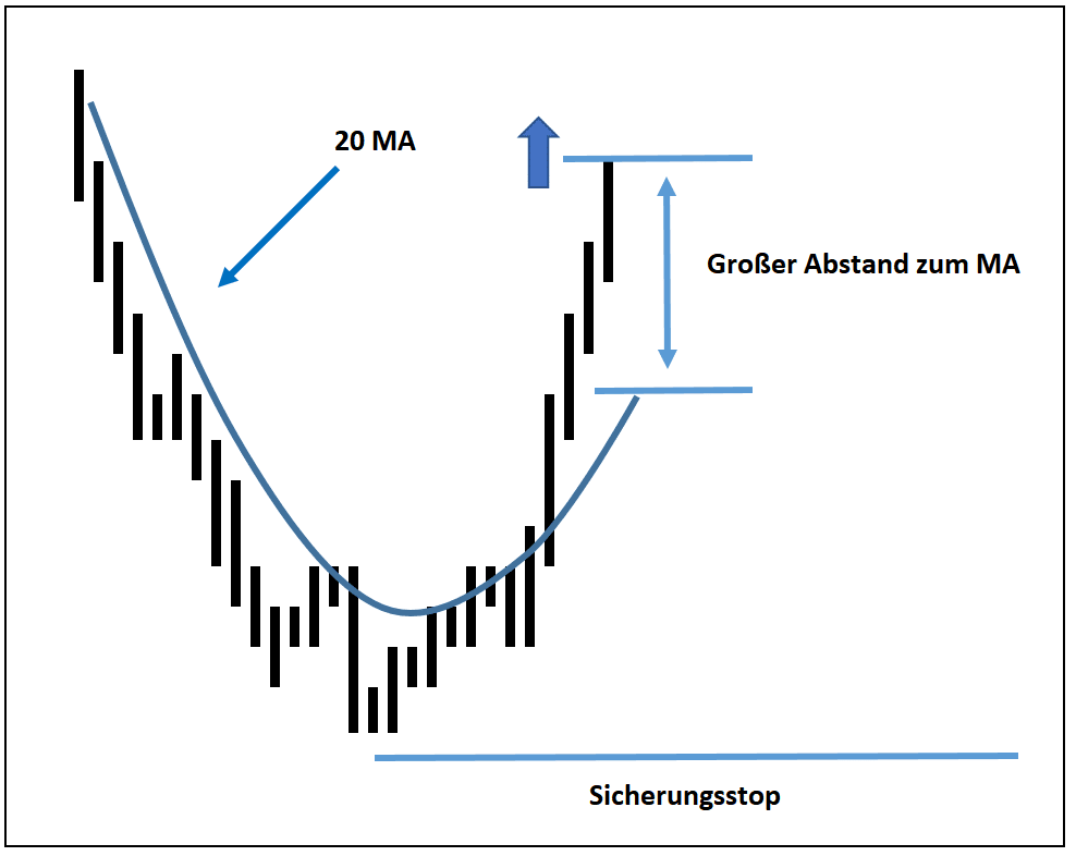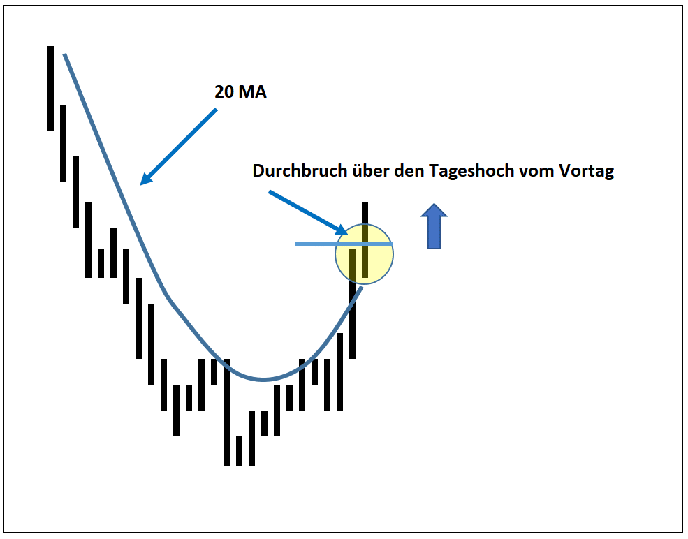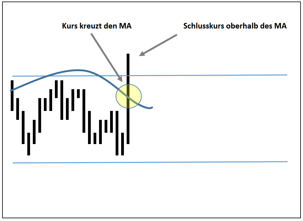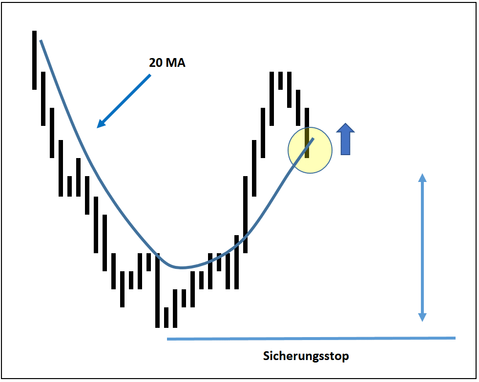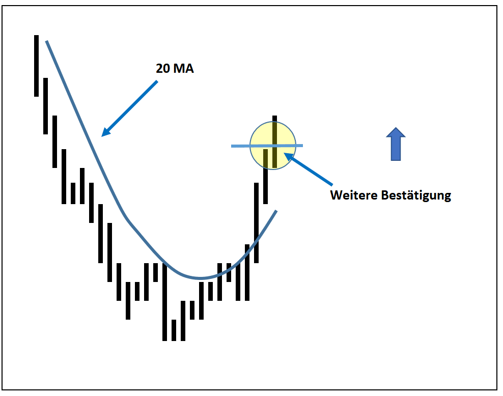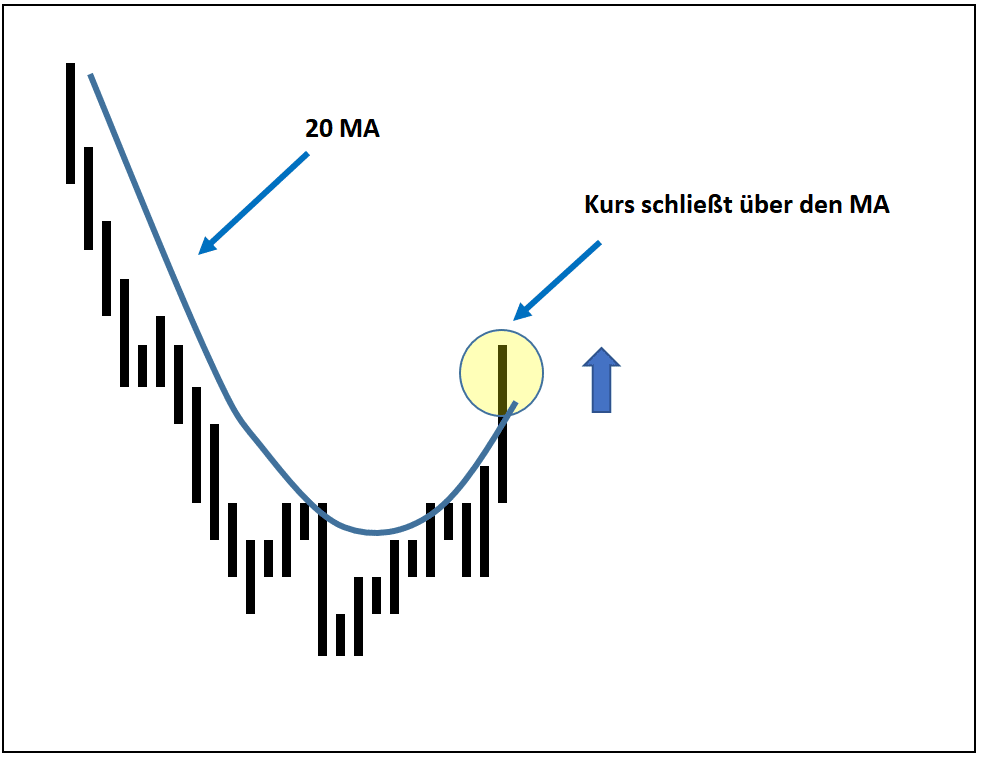 Voraussetzung ist ein Durchbruch des Kurses über den 20 MA mit einem Schlusskurs über dem Moving Average.