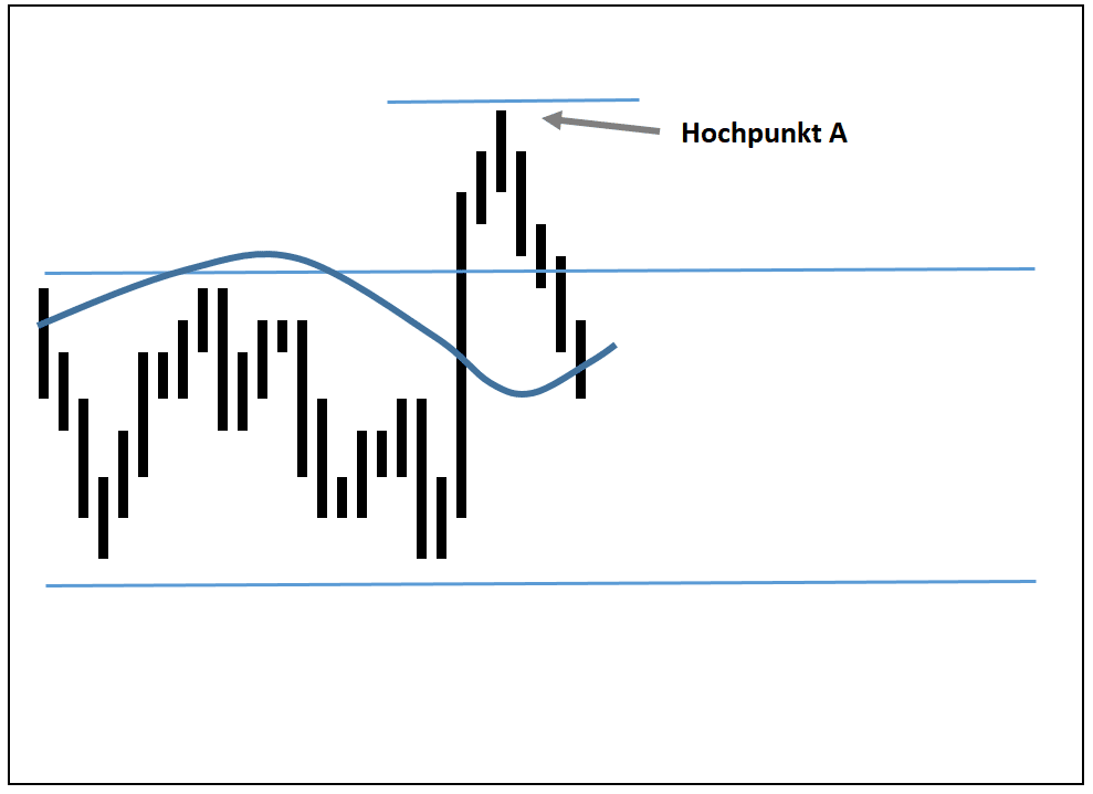 Das gebildete Hoch ist unser erster Hochpunkt (Hochpunkt A), nachdem der Kurs wieder zurück zum MA fällt.