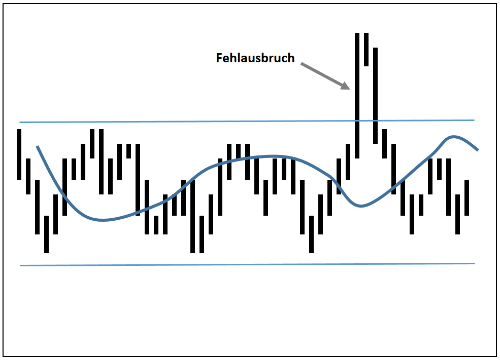 Seitwärtsbewegungen sind grundsätzlich nicht einfach zu handeln, und ein Moving Average bietet hierbei keine Unterstützung. Bei einem Ausbruch aus einer Seitwärtsbewegung besteht immer die Gefahr eines Fehlausbruches und die Rückkehr des Kurses in die Seitwärtszone.