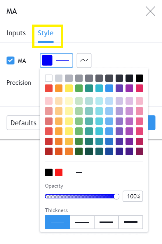 Oben links im Einstellungsmenü kannst Du im Reiter „Style“ Farben und Linienbreite individuell festlegen.