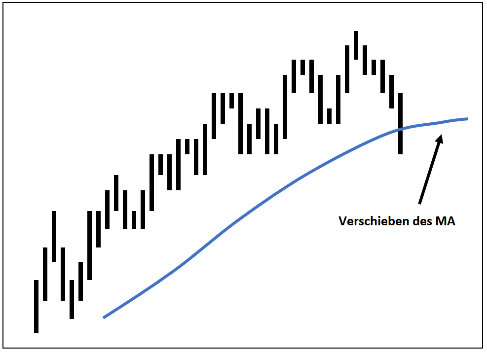 Eine etwas gewagte Methode, den weiteren Kurs und damit die Zukunft vorherzusagen, ist das Verschieben des Moving Average.