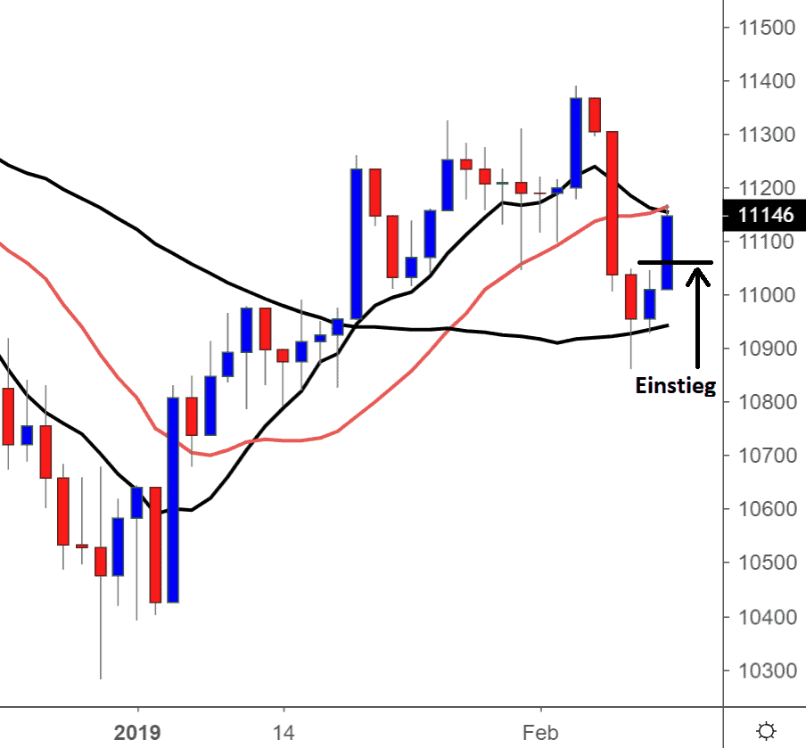 Am nächsten Tag schließt der Kurs jedoch tiefer. Kein Einstieg. Aber die Tage darauf erhalten wir ein Einstiegssignal.