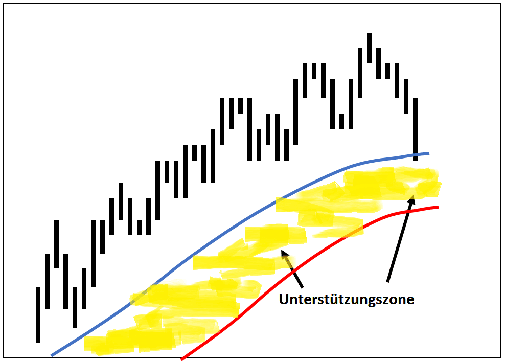 1. Der Durchschnittskurs ist der reale fair bewertete Kurs. Entfernt sich der Kurs zu weit vom Durchschnittskurs (also vom MA), dann ist der Kurs überkauft, also zu teuer. Fällt der Kurs unter den Durchschnittskurs, dann ist dieser überverkauft.