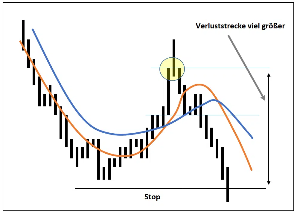 Der spätere Einstieg hat den Vorteil, dass der Trendwechsel deutlich zu erkennen ist.