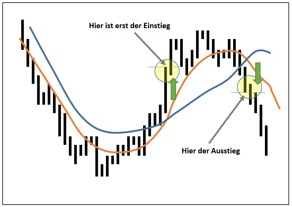 Ein vorlaufender Indikator soll die zukünftigen Kurse anzeigen. Warum ein Durchschnittskurs aus der Vergangenheit sich in der Zukunft wiederholen soll, leuchtet mir persönlich nicht ein.