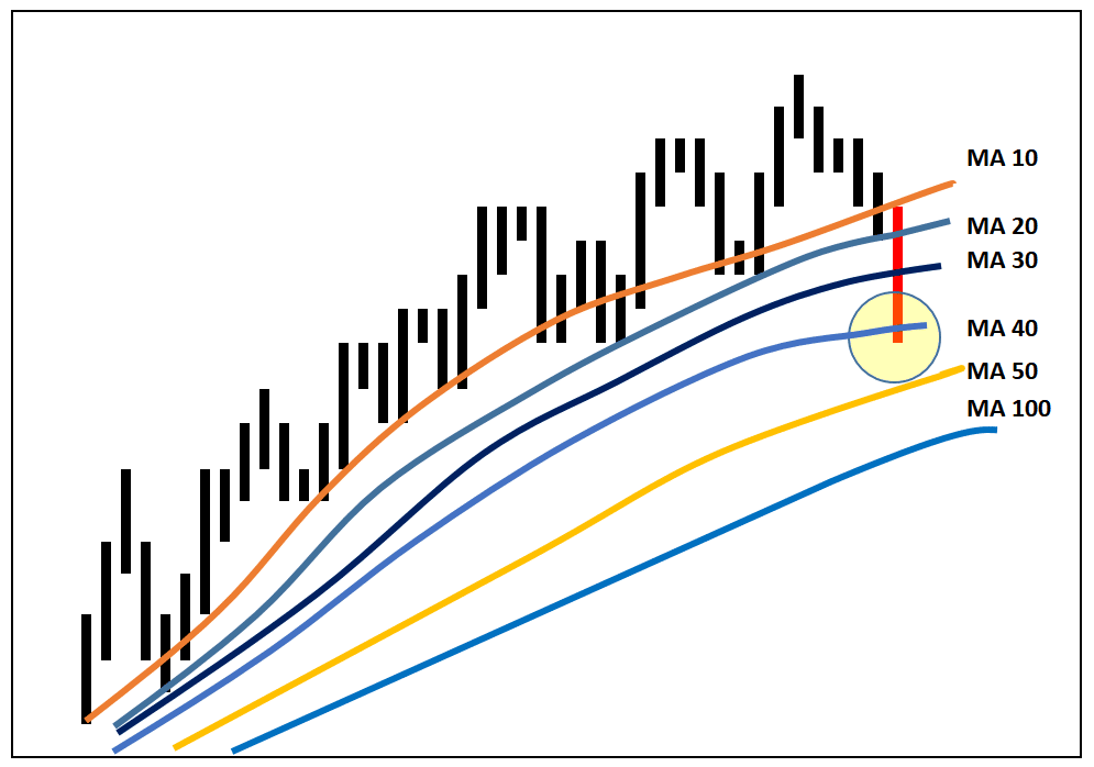 Wir wissen, dass Moving Averages letztlich einen ganzen Bereich abdecken. Es geht also nicht nur um unsere bevorzugten MAs, sondern auch um die MAs aller Marktteilnehmer, die Moving Averages nutzen.