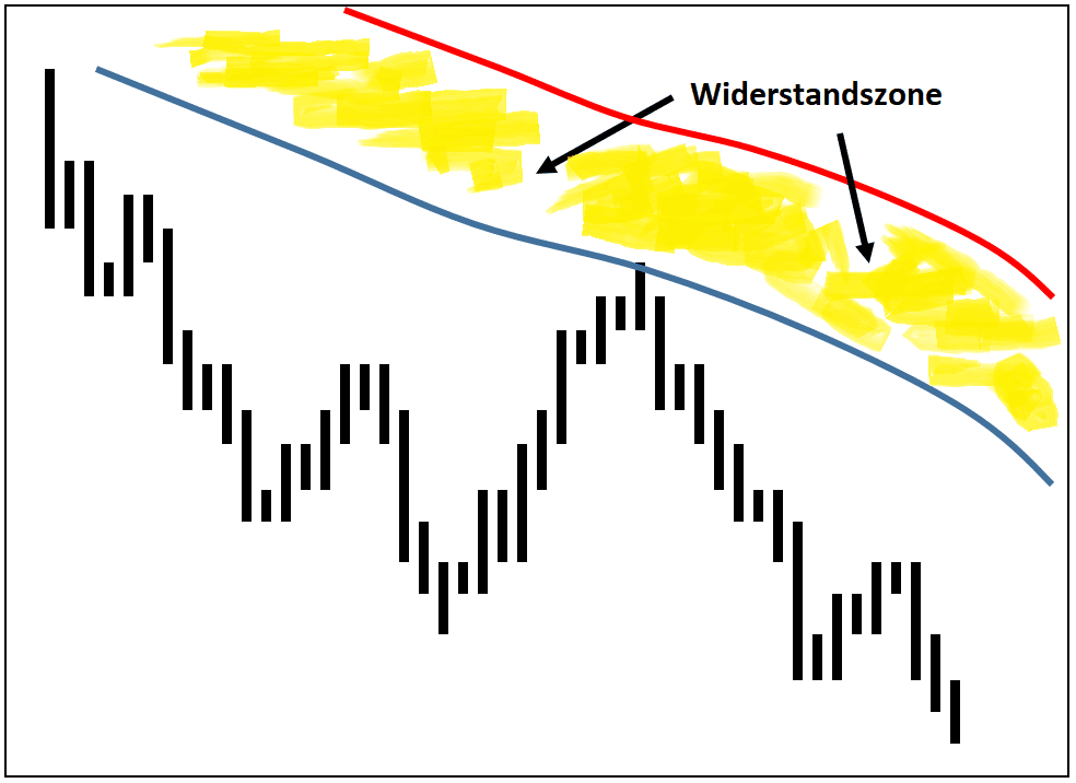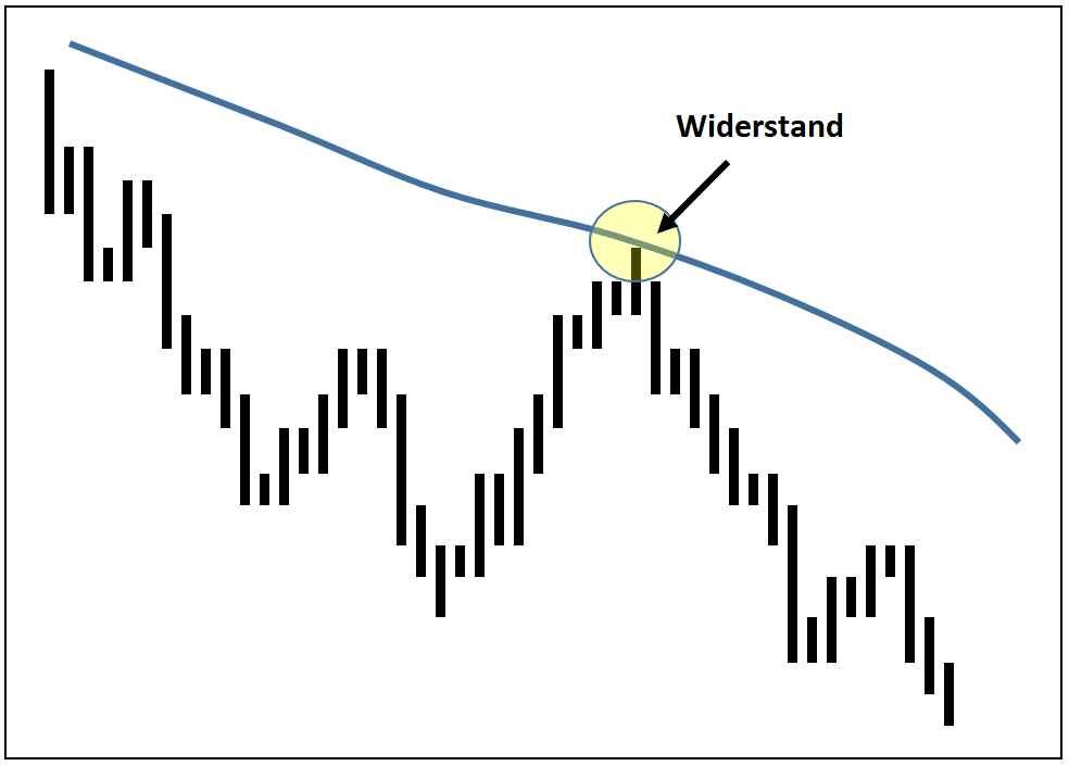 Wie wir aber nun wissen, empfiehlt sich hier kein Einstieg. Viele Händler nutzen in dieser Situation eher einen Verkauf und handeln in den intakten Abwärtstrend.