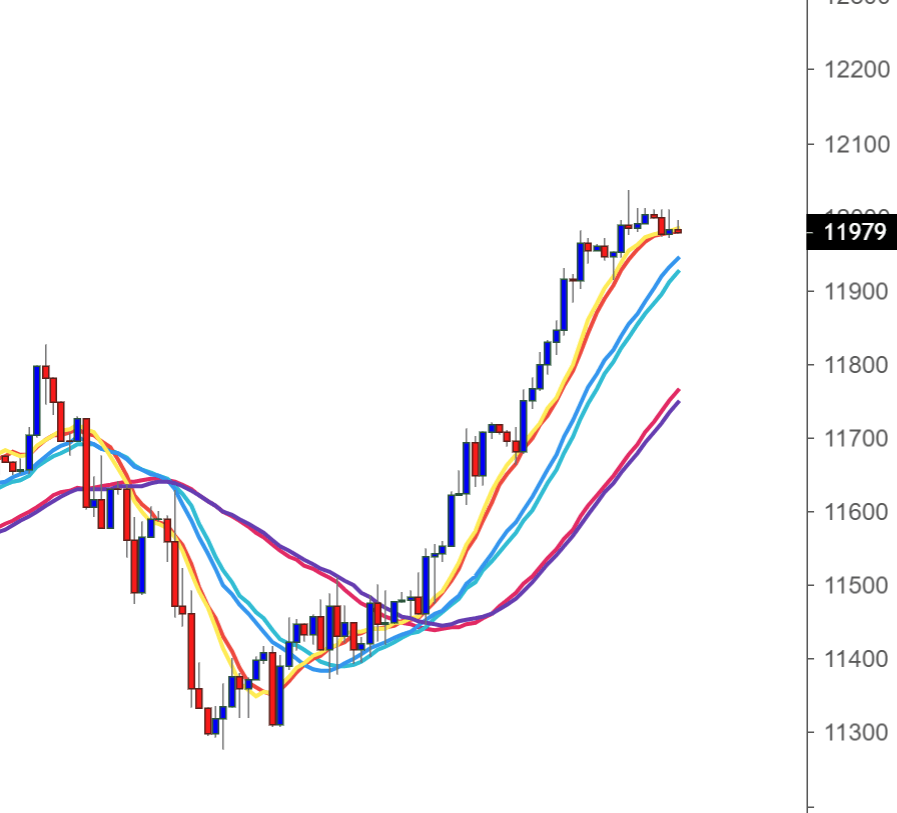 Vor allem aber haben die smarten Verkäufer zu viel höheren Preisen verkauft. Und zwar schon einige Tage zuvor im Kursbereich von 11.800. Die haben gute Gewinne in den Tiefs erzielt. Für weitere neue Tiefs benötigt es neue Verkäufer.